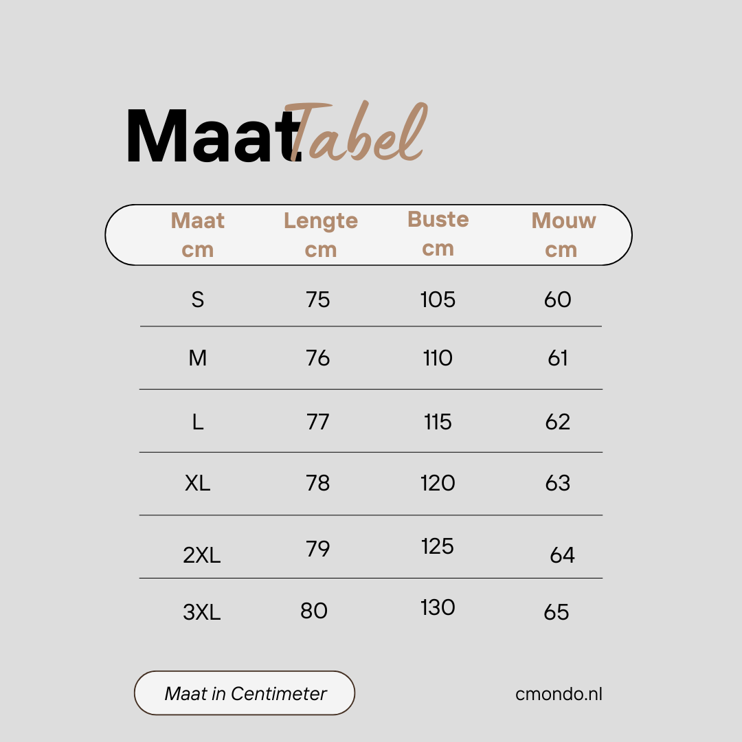 Tip: Indien je maat tussen twee confectiematen ligt, bestel dan altijd de grotere maat. |
